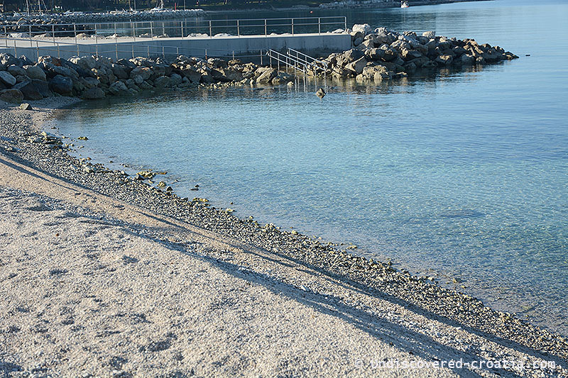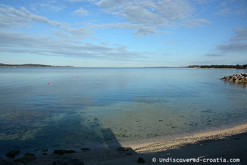 Puntižela Beach is located near Štinjan in Pula. The beach is pebble with a couple of concrete, beautifully landscaped plains. View From the beach to the island of Kotež and the island of St. Jerome(otok sveti Jerolim) as well as the Brijuni islands.The beach itself has no shade, but immediately behind the beach is a green base above which large pine trees grow. Punitžela resort has a camp, hostel, mobile houses and other facilities. Lifeguard service in red houses takes care of the security of the swimmers. Puntizela beach has rent boats and pedal boats,there is beach volleyball. Day boat transfer to Brijuni is from Fažana, more info at np-brijuni.hr